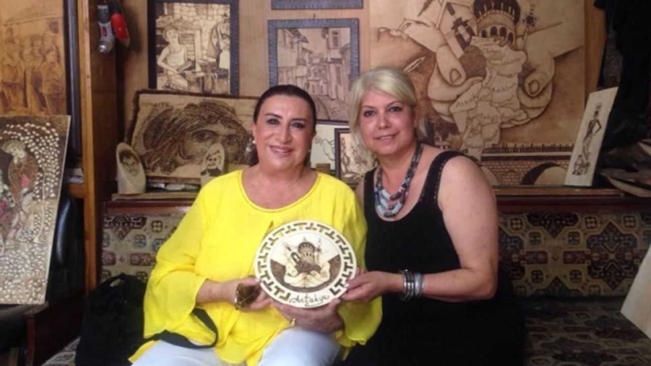 Tiyatro ve Sinema oyuncusu Perran Kutman ve eşi Antakya’da Resim Yakma Sanatçısı Zeynep Gülbol’un yakma resim atölyesini ziyaret ettiler.