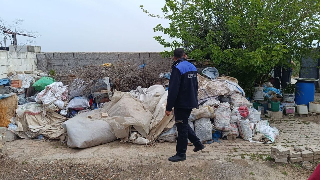 Ekipler, ikametin girişinde ve bahçesinde plastik malzeme ve evsel atık biriktirildiğini belirledi.