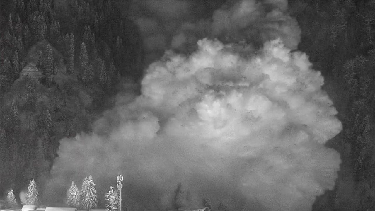 Çığın düşme anı, yayladaki bazı işletmelerin güvenlik kamerasınca görüntülendi.