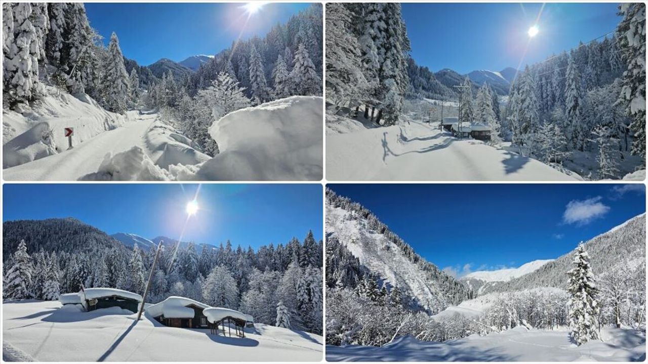 Beyaza bürünen Galerdüzü Yaylası ve Kaçkar Dağları'nın eteklerinde oluşan seyrine doyumsuz kar manzarası dronla kaydedildi.