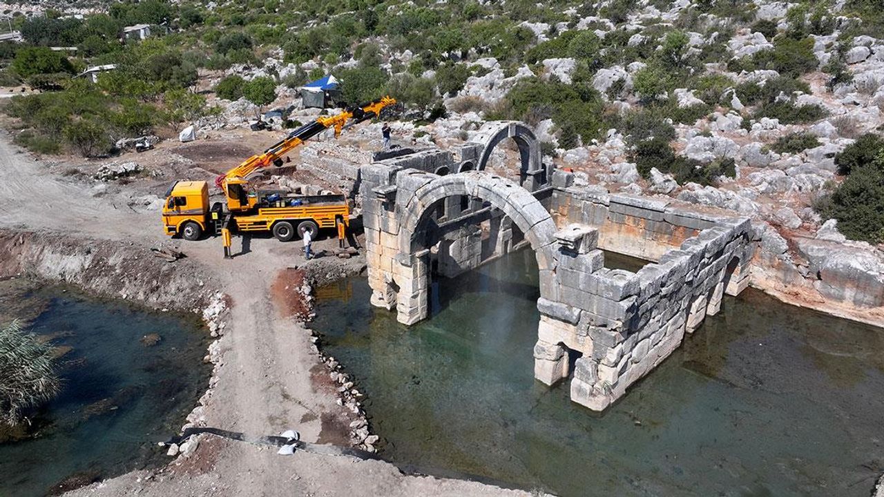 ANTALYA (AA) - Myra Antik Kenti ile kentin limanı Andriake arasında, günümüzde eski sanayi bölgesinde kalan su yapısındaki çalışmalar, sanayinin faaliyetine son verilmesinin ardından hız kazandı.