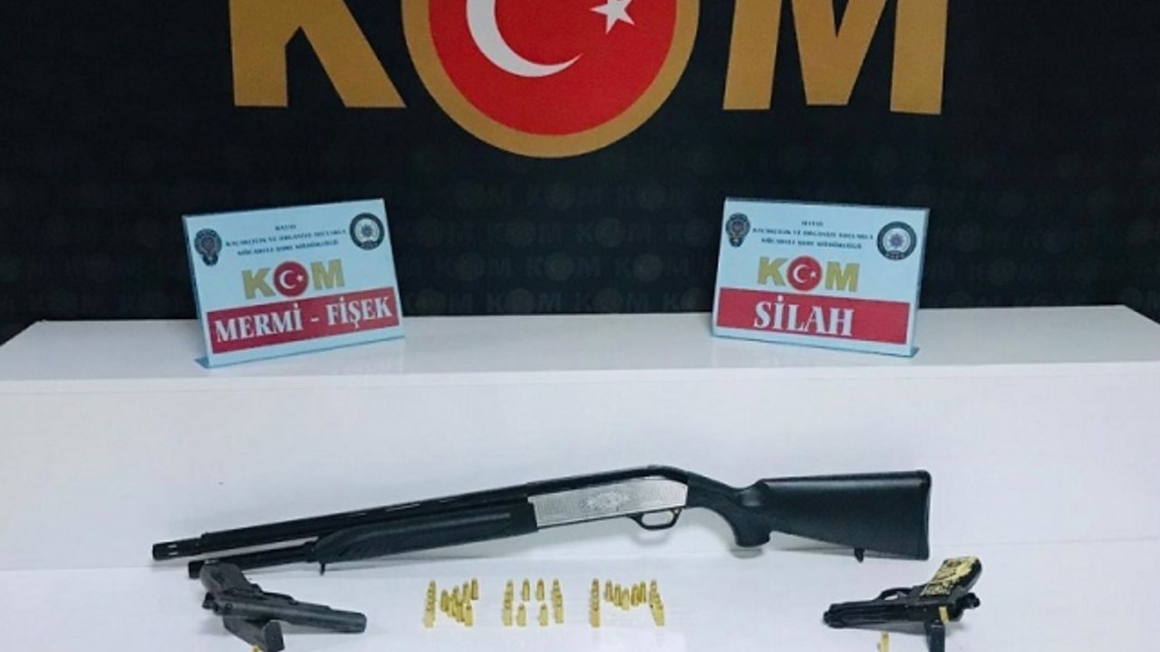Kom Şube Müdürlüğü Organize Suçlar Büro Amirliği ekipleri tarafından Belen İlçesi Issume Mahallesinde 6136 S.K.M suçu kapsamında yapmış olduğu aramada; 1 Adet Browning marka 9mm çapında tabanca, 1 Adet Beretta marka 9mm çapında tabanca, 1Adet Magnum marka ruhsatsız Av tüfeği ve 41 Adet 9 mm çapında tabanca fişeği Ele geçirildiği belirtildi. Kom Şube Müdürlüğü Organize Suçlar Büro Amirliği ekipleri tarafından Ü.G isimli şüpheli şahısa 6136 SKM suçundan adli işlem yapıldığı ve düzenlenecek olan tahkikat evrakı mevcutlu olarak gönderileceği bildirildi. Haber Bülteni