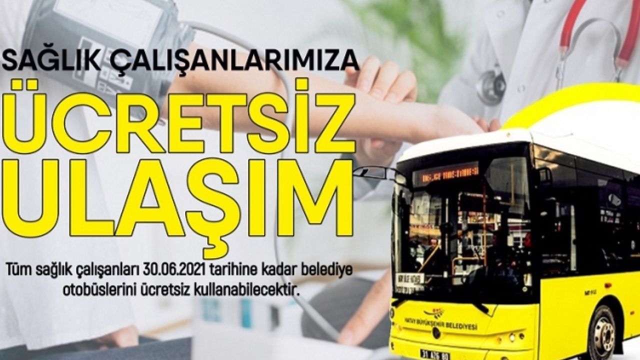 Hatay Büyükşehir Belediyesi, Koronavirüs salgını nedeniyle sağlık çalışanlarının toplu taşıma araçlarından ücretsiz faydalanmaya devam edileceğini duyurdu.