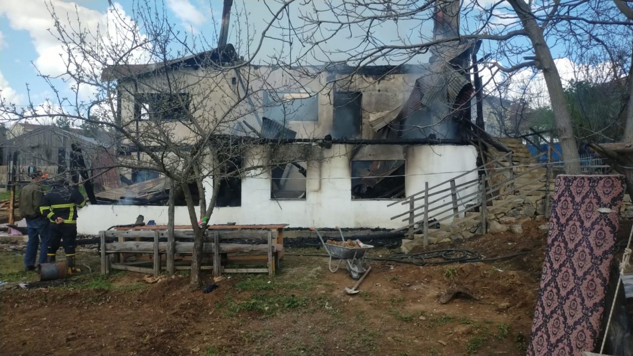 İtfaiye ekiplerince söndürülen yangında ev kullanılamaz hale geldi.