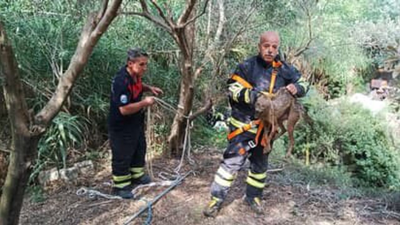 Yeşilköy Mahallesi'nde içerisinde su bulunan kuyuda mahsur kalan çakalı görenler durumu itfaiyeye bildirdi.