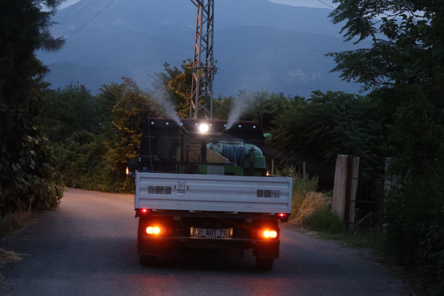 Hatay Büyükşehir Belediyesi Tarımsal Hizmetler Dairesi Başkanlığı’na bağlı ekipler, halk sağlığını tehdit eden unsurları bertaraf etmek amacıyla ilçede birçok noktada ilaçlama çalışmalarını yoğunlaştırdı. Gündüz saatlerinde genel haşere ve larva ilaçlaması yapan ekipler, gece saatlerinde ise özellikle sivrisinek ve uçkun popülasyonuna karşı etkili mücadele yürütüyor.