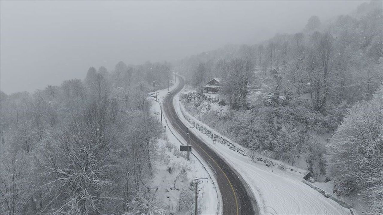 KOCAELİ (AA) - Kocaeli'de Samanlı Dağları'nın yamaçlarında etkili olan kar yağışının oluşturduğu kış manzaraları dronla kayda alındı.
