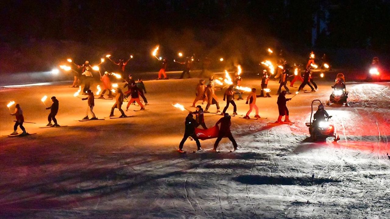 Hava sıcaklığının sıfırın altında 15 derece ölçüldüğü kayak merkezinde, kayak eğitmenleri meşaleli kayak gösterisi sundu. Kafkas Halk Oyunları ekibinin gösterisiyle de Sarıkamış Kayak Merkezi sezona 'merhaba' dedi.