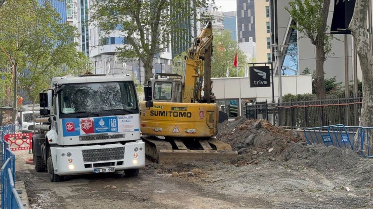 Maslak'ta Eski Büyükdere Caddesi'nde bir inşaat alanına ait istinat duvarının yıkılması nedeniyle hemen yanında bulunan yol çökmüştü.