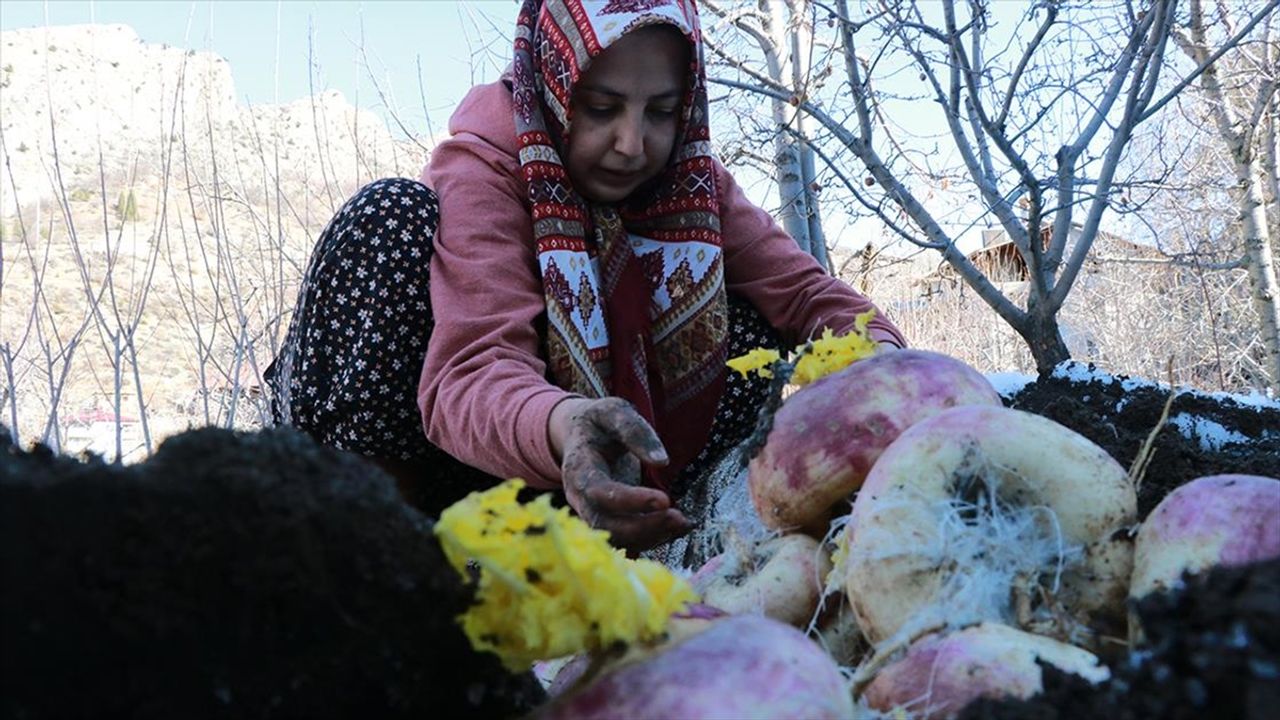 Bölgede yaşayanlardan bazıları, yaz aylarında hasadı yapılan sebzeleri, kış boyunca tüketebilmek için toprak altına gömerek muhafaza ediyor.