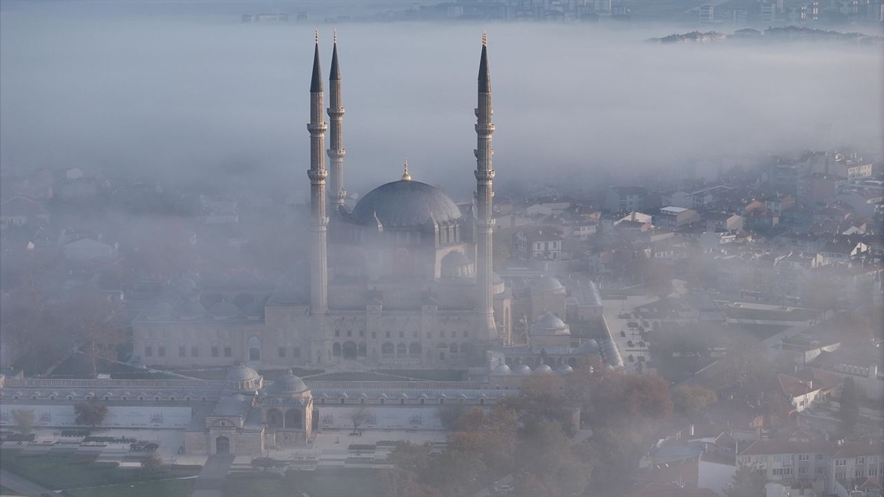 Görüş mesafesini etkilemeyen, yüksek kesimlerde etkili olan sis, Türk-İslam eserlerinin gözdesi Selimiye Camisi'ni kapladı.