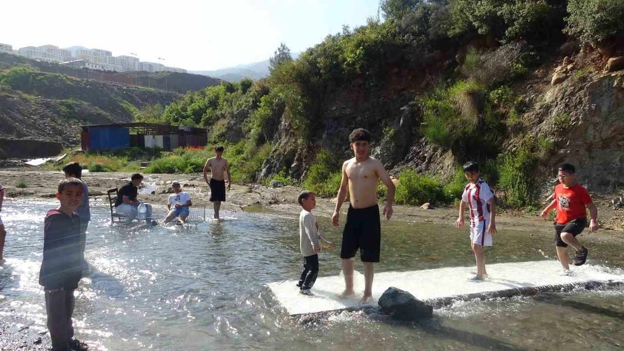 Yaz mevsiminin yaklaşmasıyla birlikte Türkiye'nin en güneyinde yer alan ve sıcak havasıyla bilinen Hatay'da termometrelerin derecesi artmaya başladı. Antakya ilçesi Gülderen Mahallesi'nde sıcak havada bunalan çocuklar derede yüzerek serinlediler.