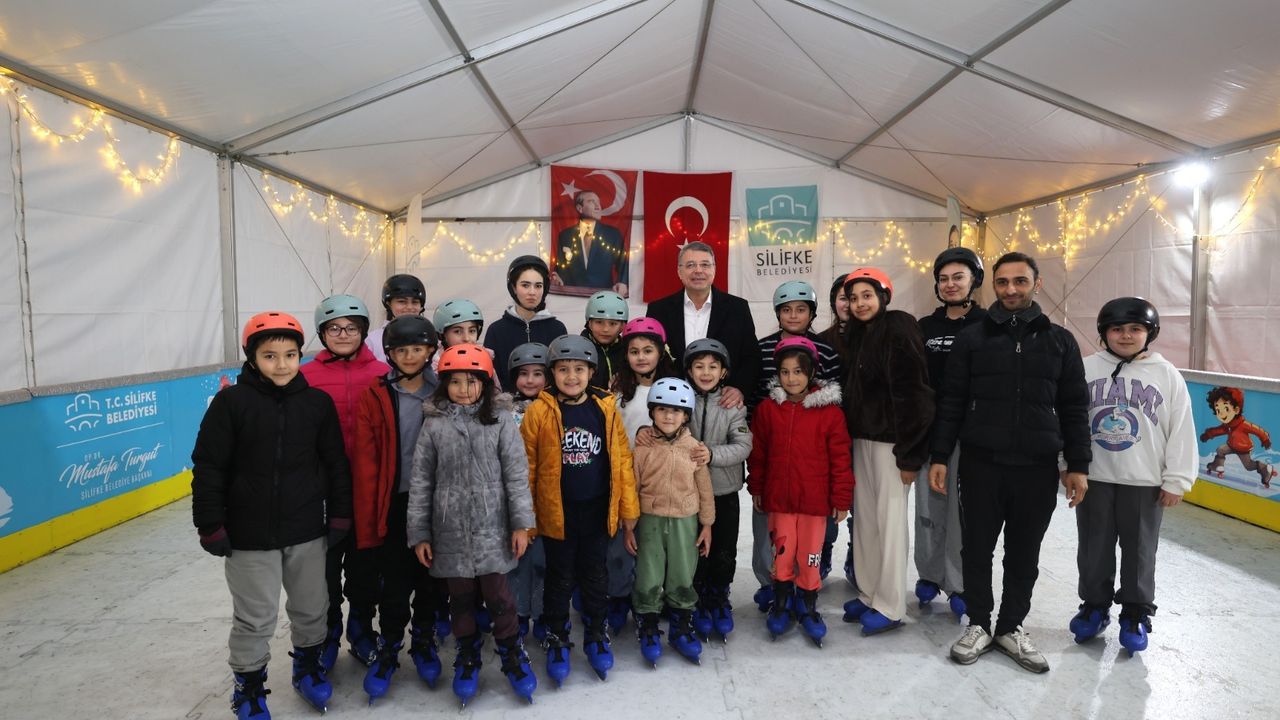 MERSİN (AA) - Mersin'in Silifke ilçesinde yarıyıl tatilinde olan öğrenciler için buz pateni pisti kuruldu.
