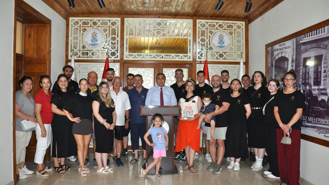 MERSİN (AA) - Silifke Kaymakamı Abdullah Aslaner, Almanya'dan çalışma kampı için ilçeye gelen Karayel Türk Halk Oyunları ekibini makamında kabul etti.
