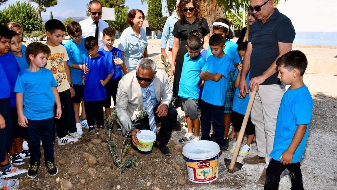 Etkinlik kapsamında 'Her Çocuk Bir Fidan, İlk Ders Yeşil Vatan' temasıyla öğrenciler okul bahçesine zeytin fidanı dikti.