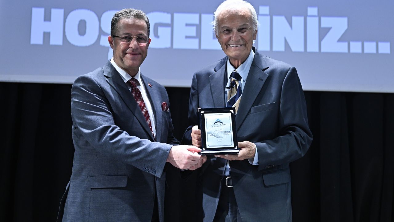 Konuşmanın ardından Antalya Bilim Üniversitesi Rektörü Prof. Dr. Semih Ekercin, Hun'a plaket verdi.
