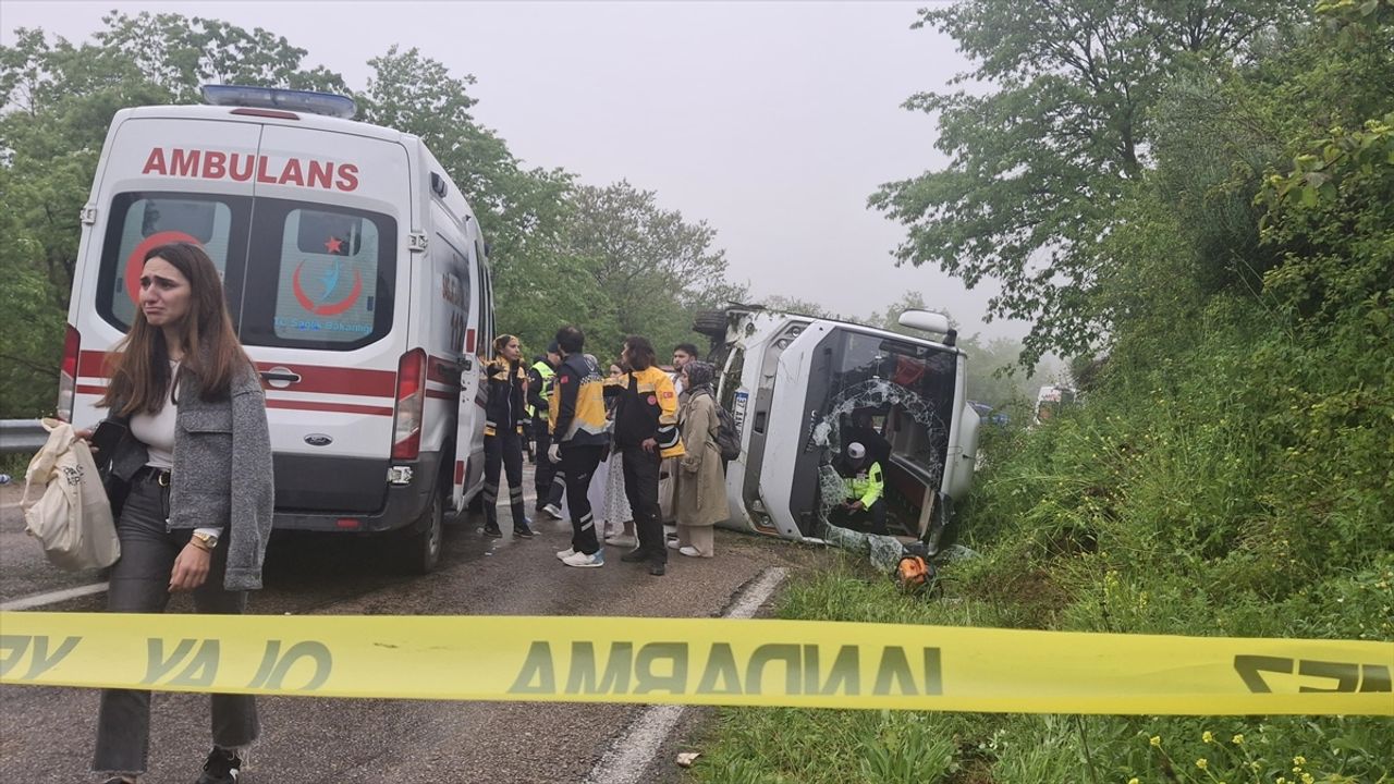SINOP (AA) - Kastamonu Üniversitesi öğrencilerini taşıyan ve sürücüsü öğrenilemeyen 37 AAN 950 plakalı otobüs, Erfelek-Gerze kara yolu Aloğlu köyü mevkisinde, Muzaffer T. idaresindeki 34 SA 5668 plakalı otomobille çarpıştı. Kontrolden çıkan otobüs, şarampole devrildi.
