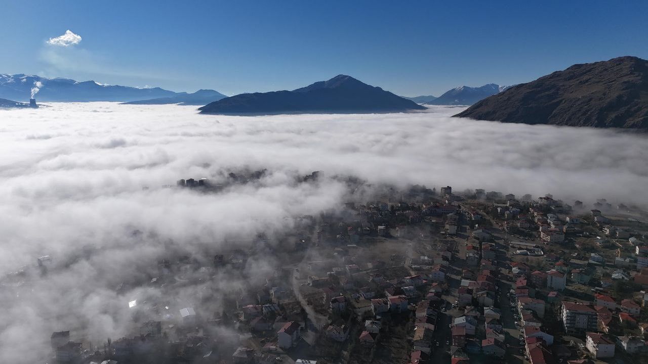 İlçe sabah saatlerinde dron ile kaydedilen görüntülerle adeta masalsı bir manzaraya büründü. İlçe merkezi, vadiyi kaplayan yoğun sis tabakasının arasında görünürken yüksek dağlar bulutların üzerinde tüm ihtişamıyla yükseldi. Sis denizinin ortasında saklı bir şehir gibi görünen Tufanbeyli, kartpostallık görüntüleriyle izleyenleri hayran bıraktı. Özellikle dağların eteklerinden yukarı doğru yükselen bulutlar, ilçeyi adeta doğa harikası bir tabloya dönüştürdü.