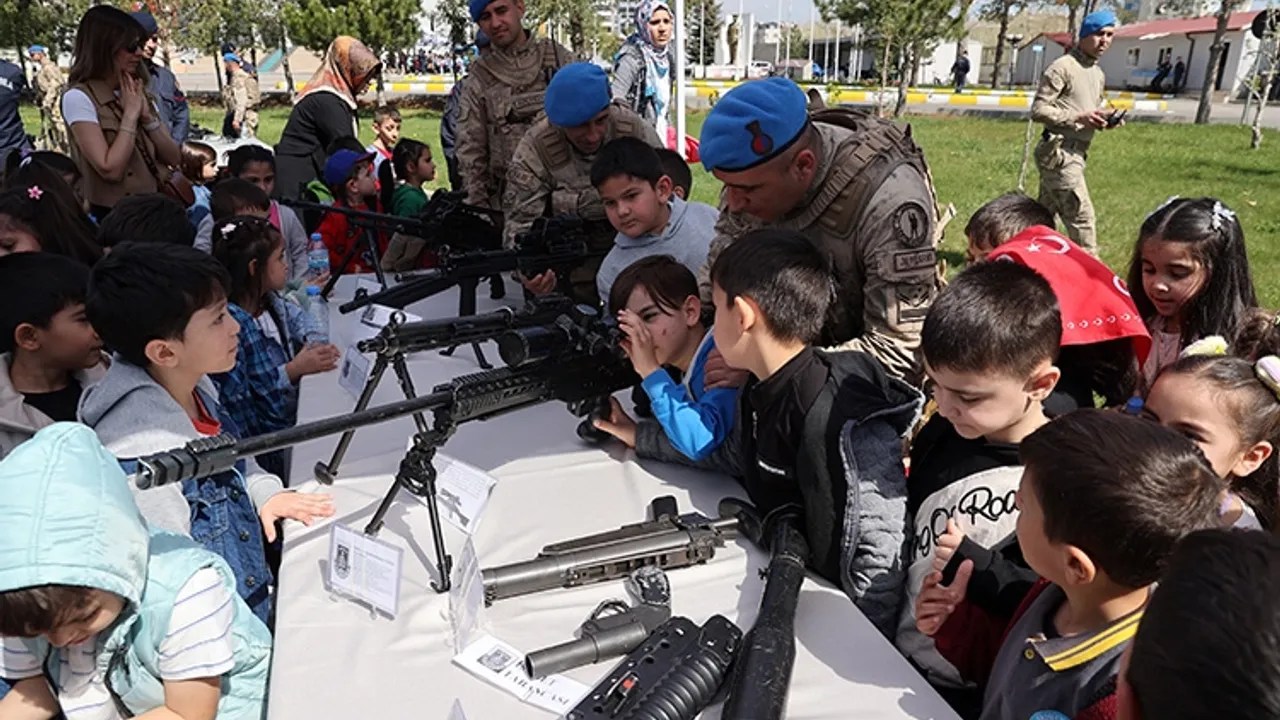 Sivas'ta, 23 Nisan Ulusal Egemenlik ve Çocuk Bayramı dolayısıyla İl Jandarma Komutanlığı kapılarını çocuklara açtı.SİVAS (İGFA) - İl Jandarma Komutanlığı bahçesinde kurulan stantlardaki ekipman ve araçlar, çocuklara tanıtıldı.