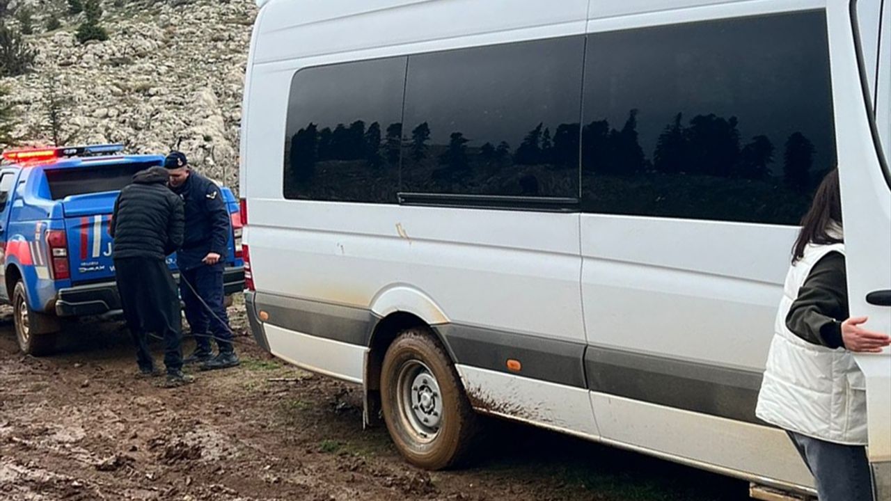 Mersin'den Yirce Yaylası'na giden 19 kişinin bulunduğu bir minibüs yolda çamura saplandı.