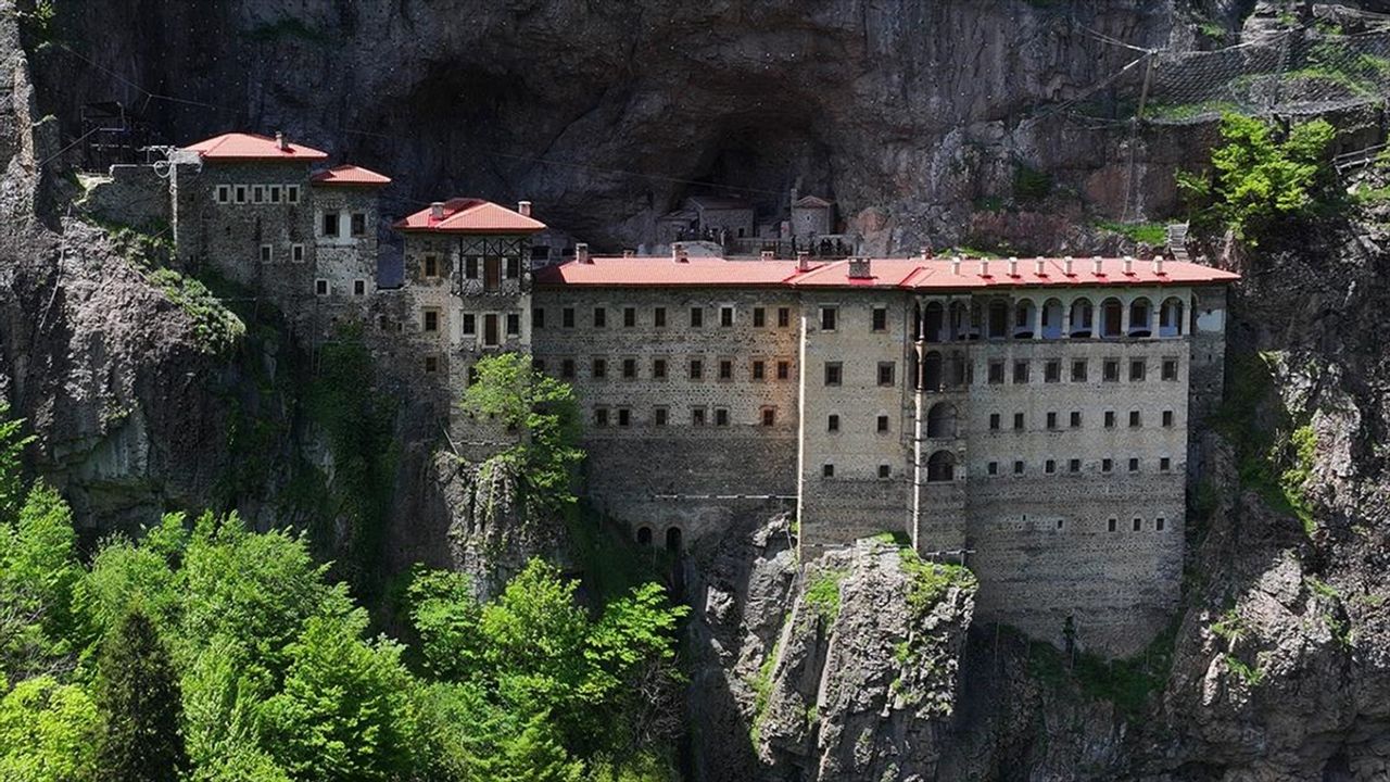 TRABZON (AA) - Trabzon'un Maçka ilçesindeki Karadağ'ın Altındere Vadisi'nde 300 metre yükseklikte kayalar oyularak inşa edilen Sümela Manastırı, ziyaretçilerine doğa, tarih ve kültürü bir arada sunuyor.