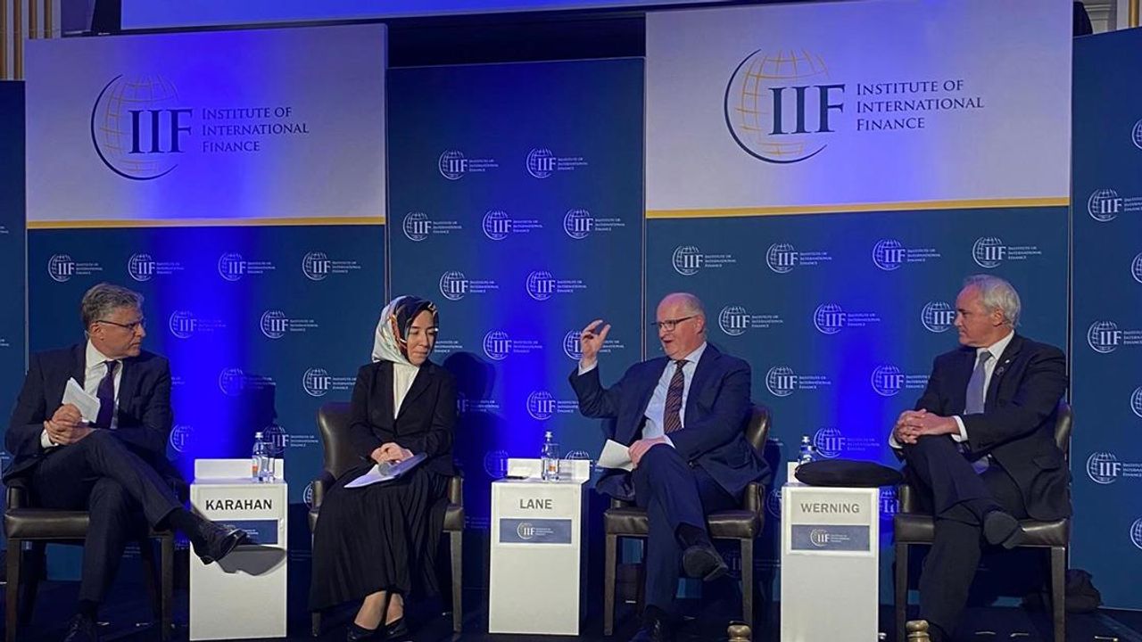 WASHINGTON (AA) - Türkiye Cumhuriyet Merkez Bankası (TCMB) Başkan Yardımcısı Hatice Karahan, Uluslararası Finans Enstitüsü (IIF) tarafından Washington’da düzenlenen Küresel Görünüm Forumu'nda "Değişen Küresel Likidite Koşulları Karşısında Merkez Bankacılarının İkilemleri" başlıklı oturumda konuştu.