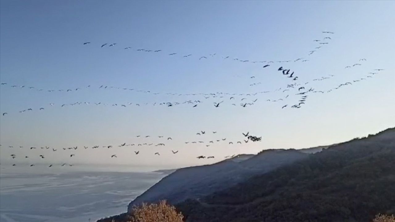 Bölgede yamaç paraşütü yapan Gökhan Baran, AA muhabirine, göç eden pelikanların insanların dikkatini çektiğini söyledi.
