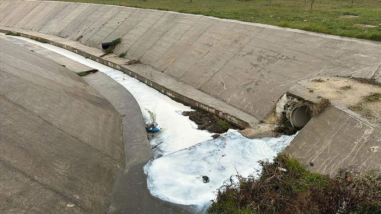 TEKIRDAĞ (AA) - Çerkezköy Organize Sanayi Bölgesi içerisinden geçen derenin beyaz aktığını gören vatandaşlar durumu yetkililere bildirdi.