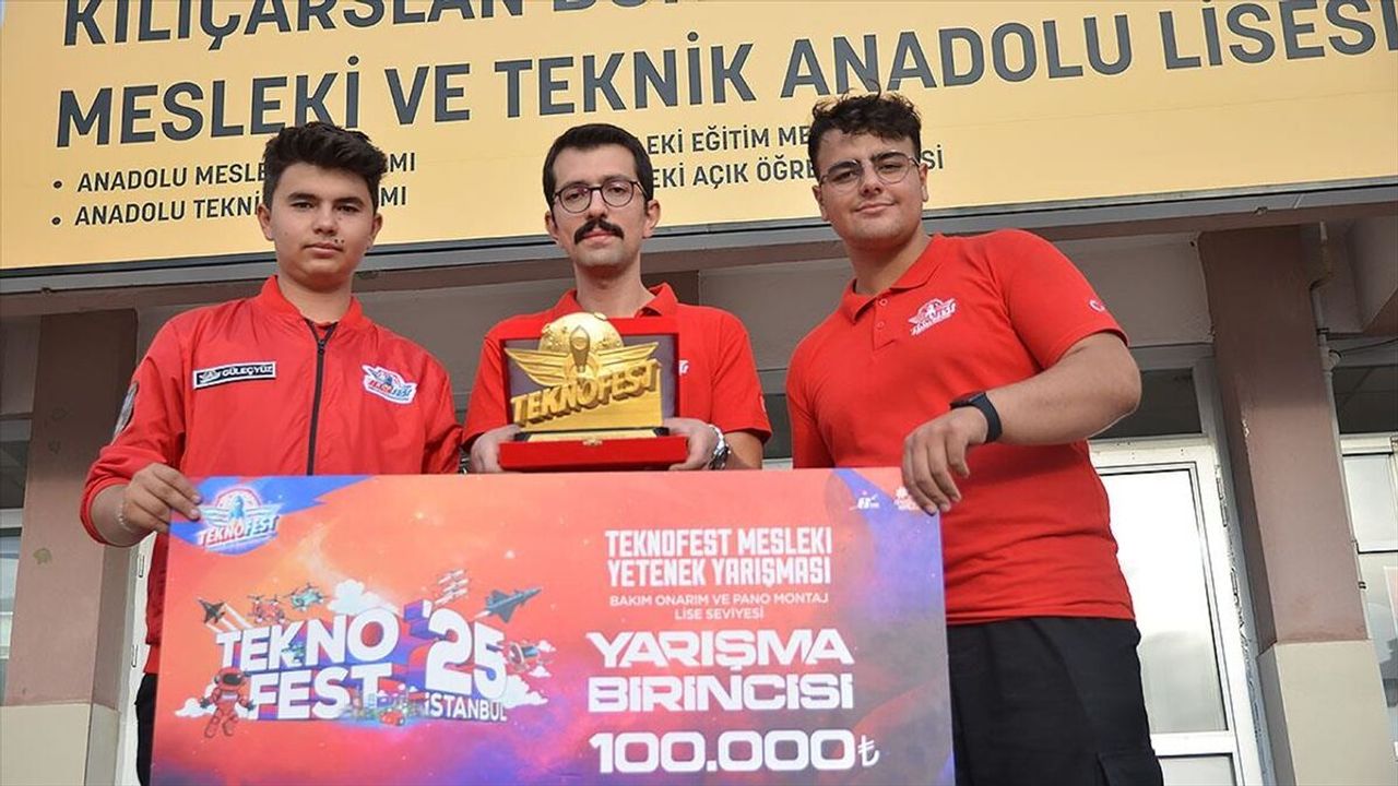 Öğrenciler, bu performansıyla, fabrikalardaki motorların istenilen şekilde çalışmasını ve elektrik panolarındaki arızaları tespit edip, yeni malzemelerle onarımını amaçlayan 'Bakım Onarım ve Pano Montaj-Lise Seviyesi' kategorisinde birinci olmayı başardı.