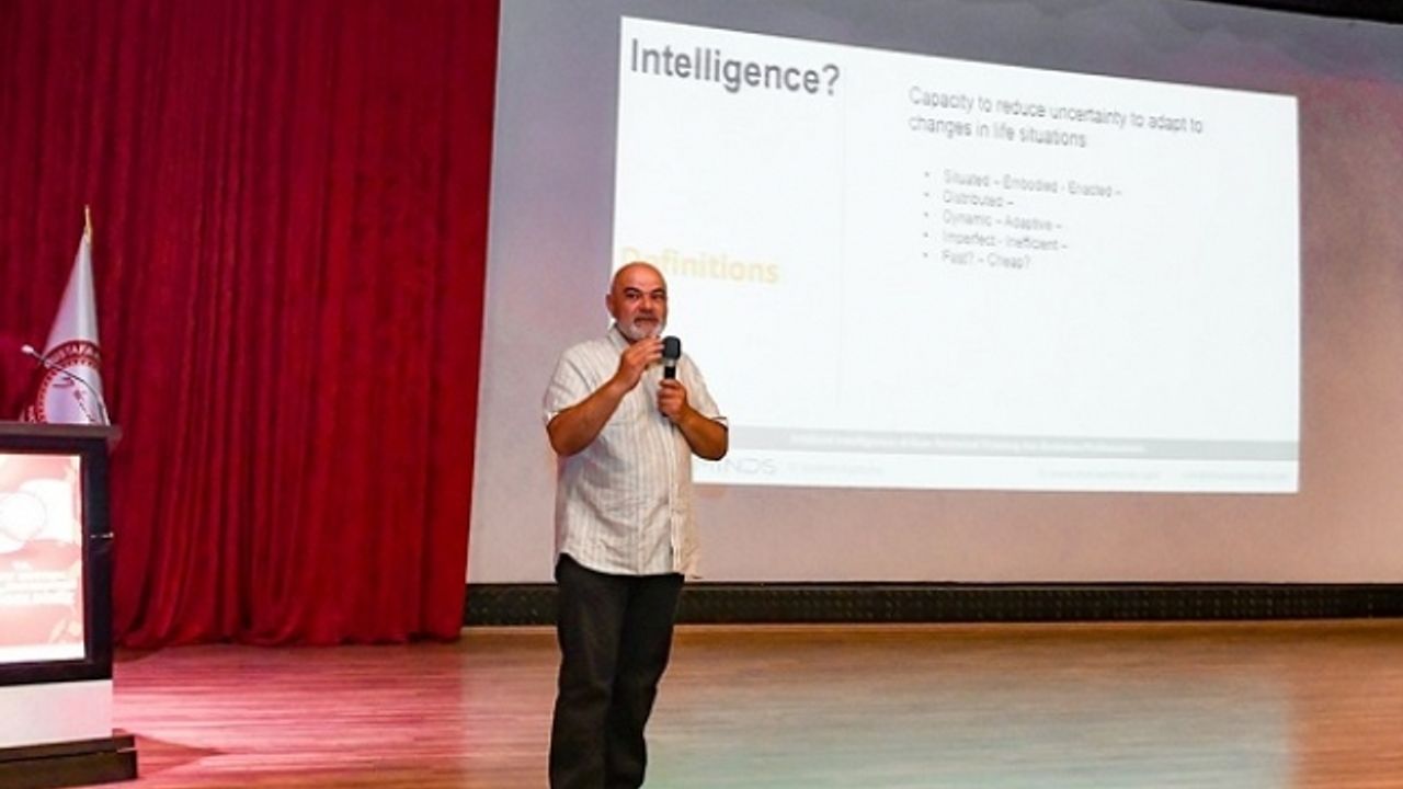 Hatay Mustafa Kemal Üniversitesi (MKÜ) Rektörlüğü tarafından Atatürk Konferans Salonunda Prof. Dr. İbrahim Kuşçu’nun konuşmacı olarak katıldığı “Geleceğin Zihinleri -Yapay Zekanın Önemi, Sınırları ve Uygulamaları” adlı bir konferans düzenlendi.