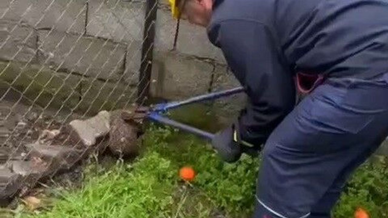 Hatay'da bir evin bahçesinde tel örgüye sıkışarak mahsur kalan kirpi, itfaiye ekipleri tarafından kurtarıldı.