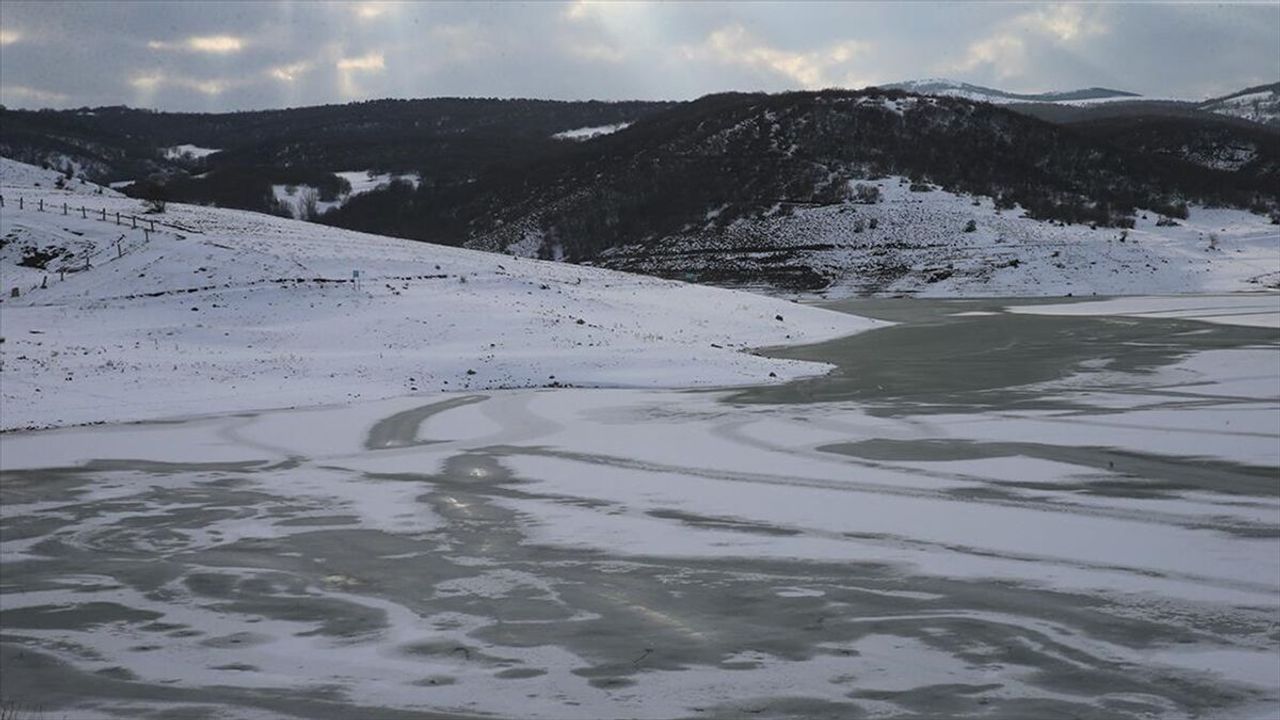 Bazı vatandaşlar, yüzeyi buz tutan Artova Göleti'nin kenarına gelerek fotoğraf çektirdi.