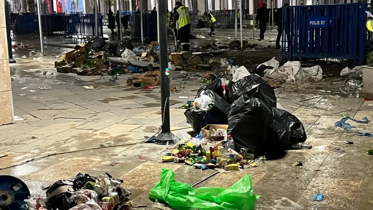 Etkinliğin ardından ise miting alanında ortaya çıkan çöp yığınları tepkilere yol açtı. Alan, plastik poşetlerden yiyecek ambalajlarına, bayrak kalıntılarından karton kutulara kadar çeşitli atıklarla doldu. Etkinlik öncesinde detaylı temizlik ve düzenlemeyle hazır hale getirilen cadde, tören sonrası adeta çöplüğe döndü.