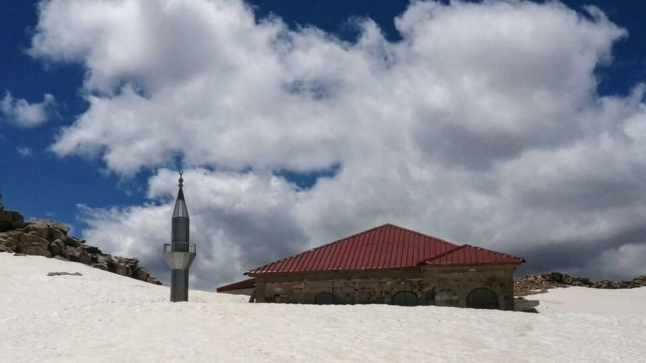 Mersin'in Anamur ilçesi ile Antalya'nın Gazipaşa ve Karaman'ın Ermenek ilçelerinin kesişim noktasında bulunan Kaşpazarı Yaylası'nda etkili olan yoğun kar yağışı, 741 yıllık tarihi camiyi adeta görünmez hale getirdi.