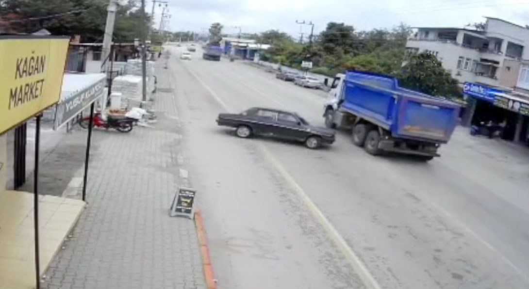 Musa Kazım Arıkan Bulvarı’nda, sürücüsü ve plakası öğrenilemeyen hafriyat kamyonu, “kör nokta” tabir edilen bölümden sollama yapan bir otomobile çarptı.