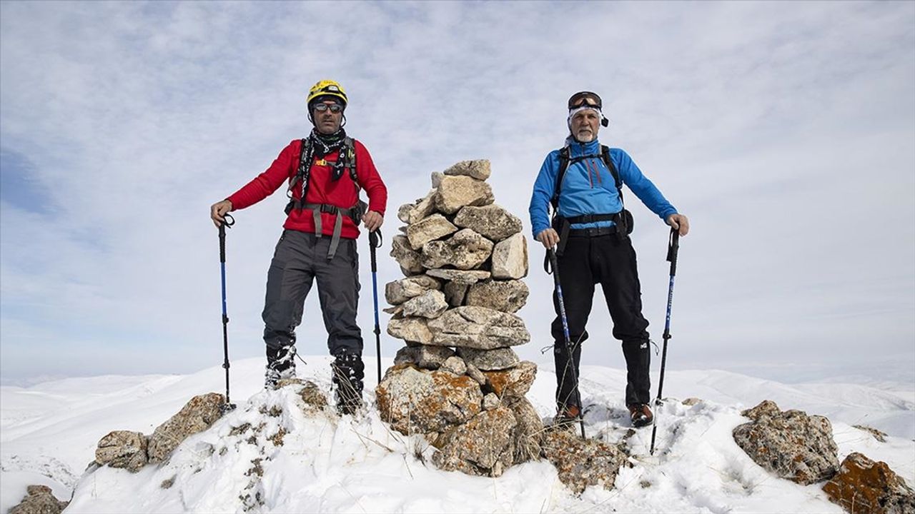 Kar kalınlığının 1,5 metreyi aştığı patikalarda bata çıka ilerleyen Doğan ve Kıllı, yaklaşık 13 kilometrelik seyahatlerinin sonunda 2 bin rakımlı dağın zirvesine ulaştı.