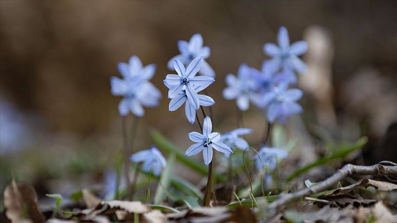 İksor Vadisi'nde de karların erimesiyle ormanlık alanlarda bilimsel adı 'Scilla siberica' olan mavi kardelenler açtı.