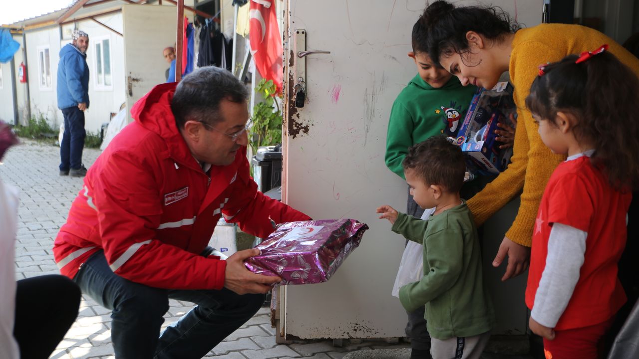 HATAY (AA) - Türk Kızılay Hatay Şubesi, Antakya ile Defne ilçelerinde ve buralardaki konteyner kentlerde yaşayan öksüz ve yetim çocukları oyuncakla sevindirdi.