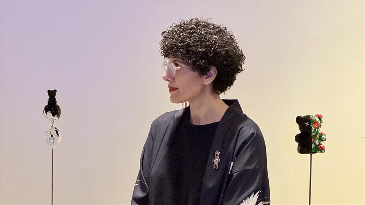Yarısı siyah, yarısı geleneksel Türk motiflerini içeren kumaşlarla kaplı ayıcıkların savaş ile barış arasındaki uçurumu anlattığını aktaran Bozyel, "Sayın Hanımefendi Emine Erdoğan, sıfır atık konusunda BM’de öncü rol oynuyor. Kendisi bizlere de büyük ilham kaynağı oluyor. Ben de bu nedenle sergilerimde atık malzemelere yer vererek, sıfır atık hedefine katkı sağlamaya çalışıyorum." diye konuştu.