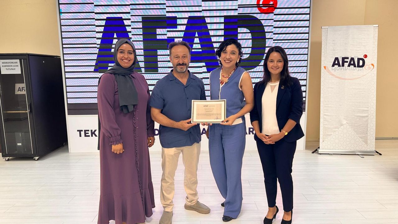 Teşekkür Belgesi, AFAD Hatay İl Müdürü Taner Bayındır tarafından takdim edildi. Belge, derneğin sadece eğitim alanında değil, kriz anlarında da aktif bir paydaş olduğunu bir kez daha gösterdi.