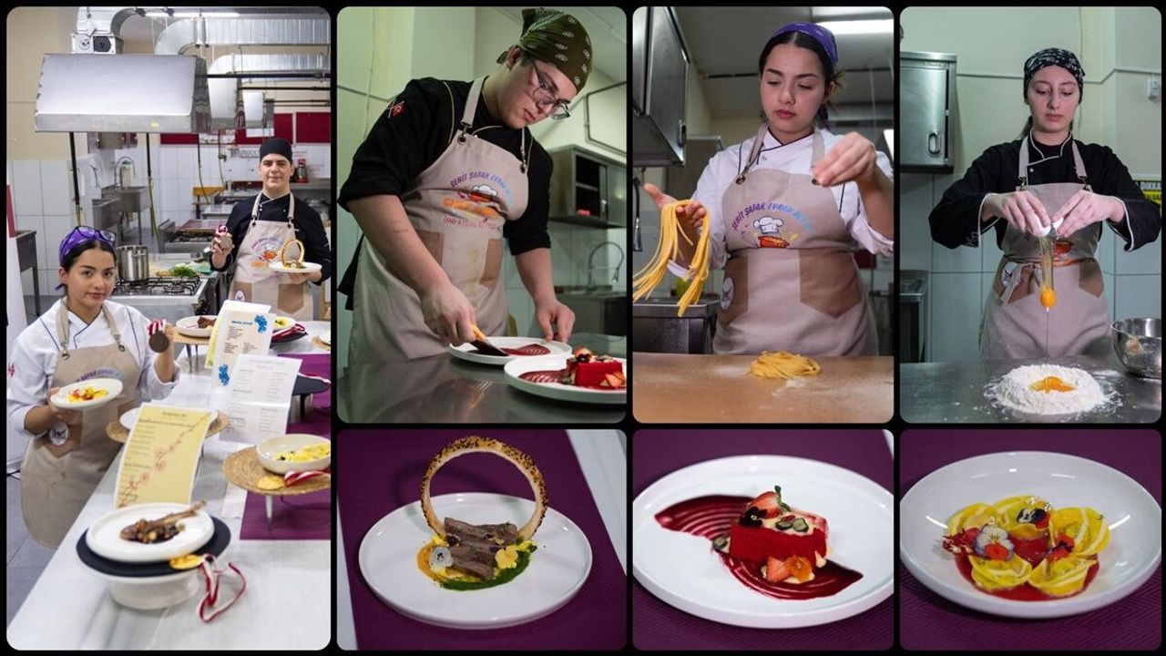 'Okulda yapıp evde deniyoruz'Öğrencilerden Melek Derin Doğan, lisede her dönem farklı yemek türleri üzerine eğitim aldıklarını, 12. sınıfta hamur işleriyle ilgili uygulamalı derslere yoğunlaştıklarını, bu yıl ise ravioli yemeğiyle TAŞFED yarışmasında bronz madalya kazandığını belirtti.