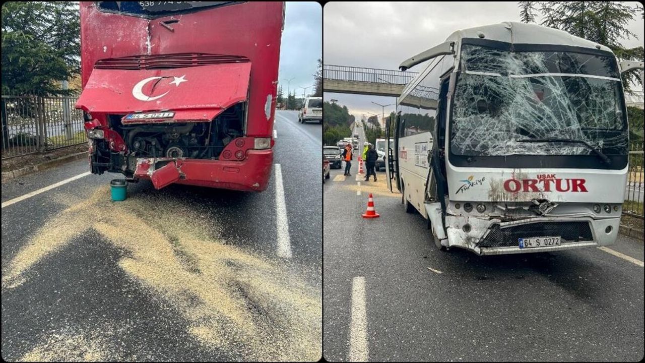 UŞAK (AA) - B.O. (25) yönetimindeki 64 S 0272 plakalı midibüs, Uşak-İzmir kara yolu Hacı Kadem Kavşağı yakınlarında aynı istikamette ilerleyen S.K. (35) idaresindeki 64 S 0211 plakalı otobüse arkadan çarptı.