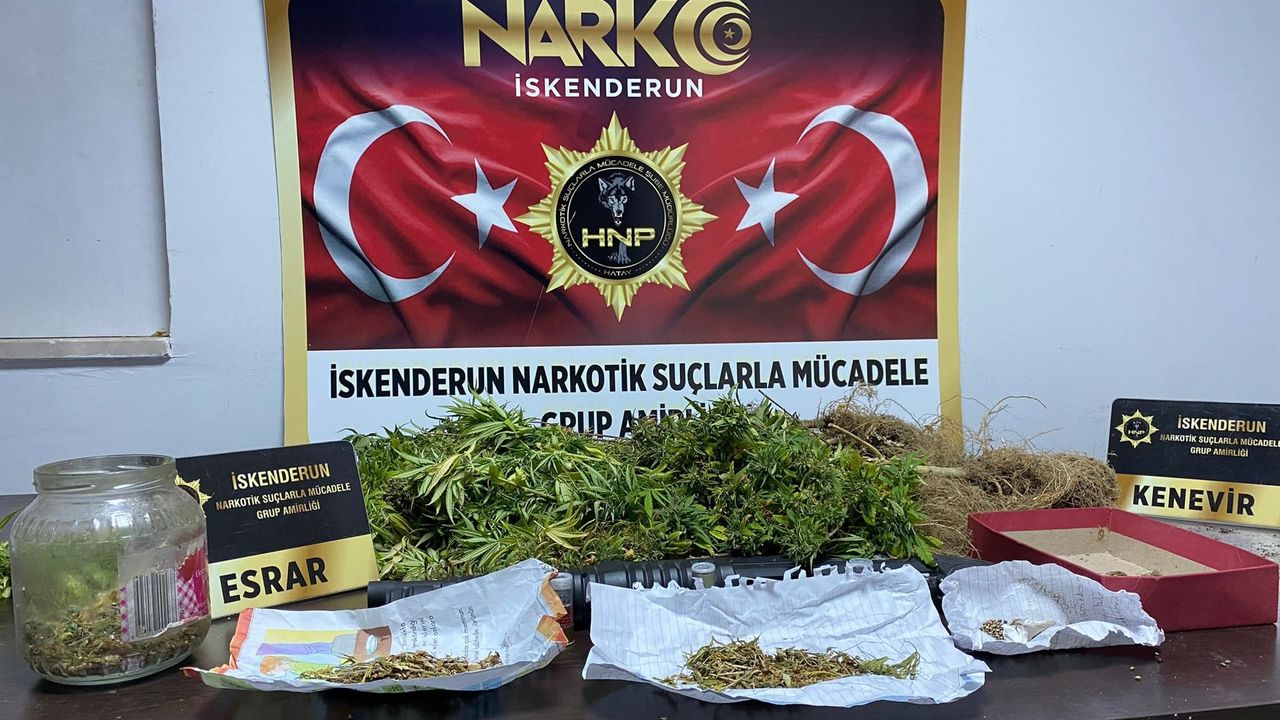 Hatay Emniyet Müdürlüğü görevlilerince uyuşturucu ve uyarıcı madde imal ve ticaretine yönelik yapılan çalışmalar kapsamında İ.Ç.’nin Dörtyol Yeşilköy Mahallesi'nde bulanan ikametinde yapılan aramada; 18 adet hint keneviri, 87,8 gram esrar, 1 adet pompalı tüfek ele geçirildi.