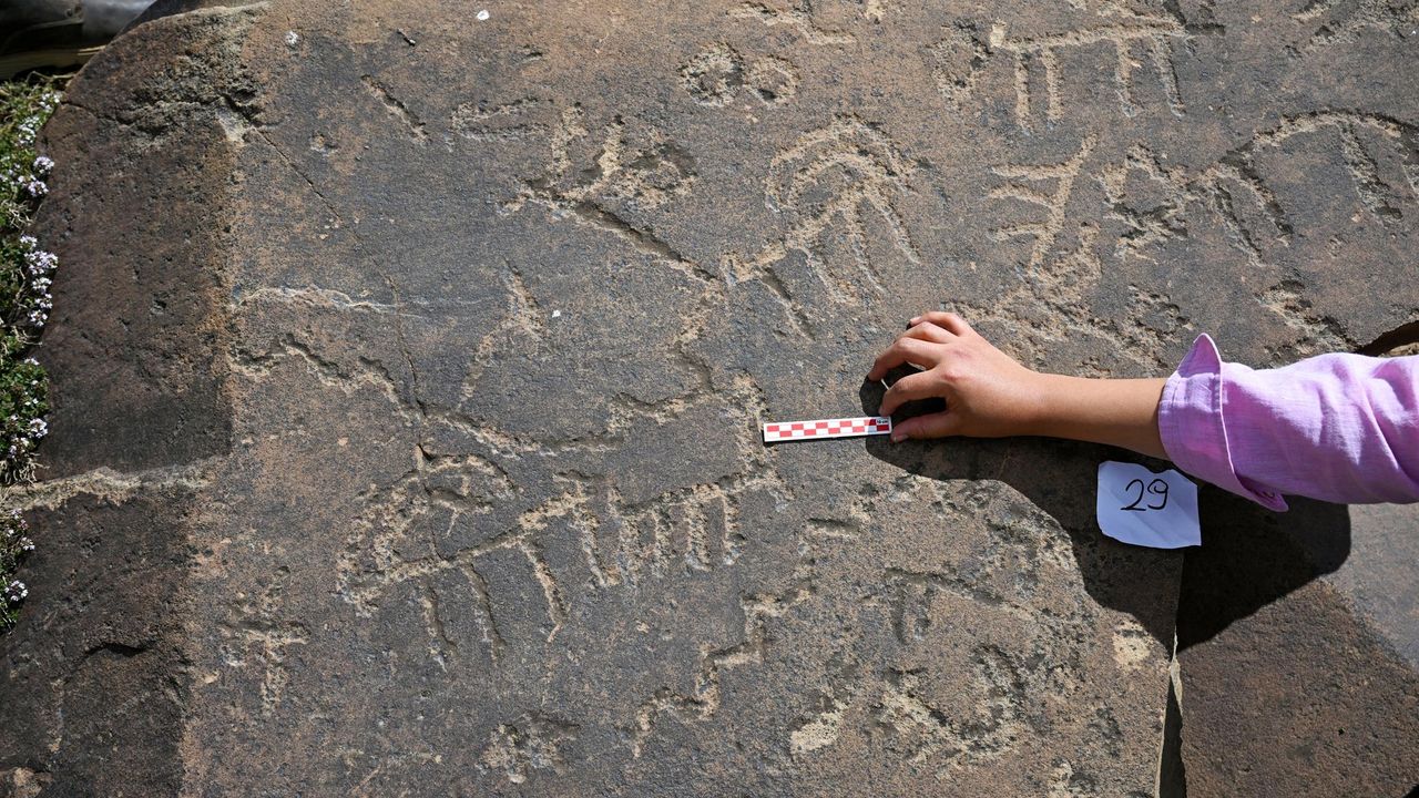 Akademisyenler, kale ve sur kalıntılarının da olduğu alanda insan, yılan, geyik, dağ keçisi, bizon, yaban koyunu, tavşan, kurt, tilki ve sembolik şekillerin çizildiği kayaları inceledi, fotoğraflarını çekerek kayıt altına aldı.