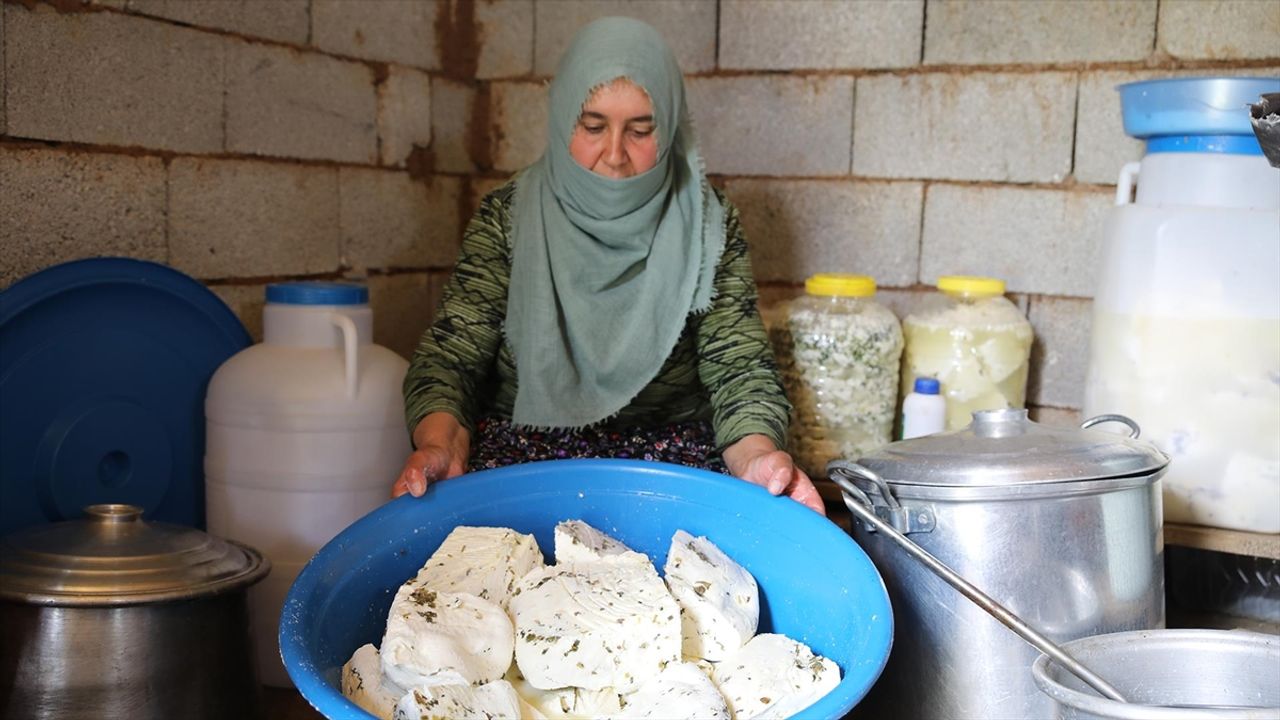 Kadınlar, günde iki kez sağdığı sütü, tereyağı ve bölgede topladıkları kekik ve sirmo otuyla harmanlayarak otlu peynir haline getiriyor.