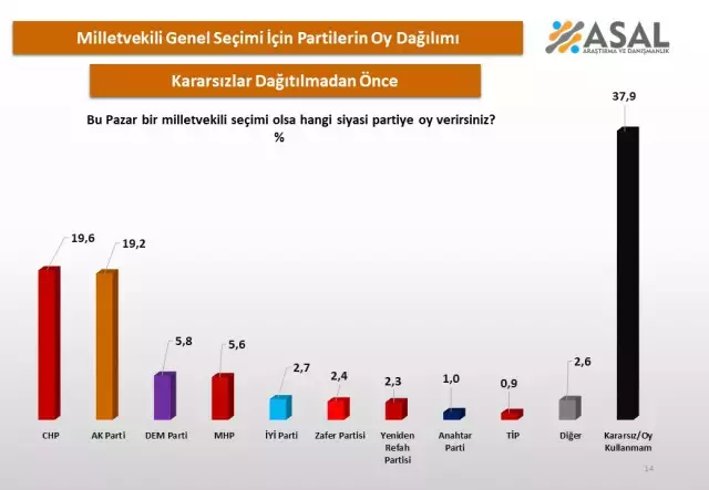 ASAL Araştırma'nın anketi, Türkiye'deki siyasi ortamın ne kadar değişken olduğunu bir kez daha gözler önüne seriyor. Hem CHP hem de AK Parti, halkın büyük bir kısmının desteğini almayı başarmış olsa da, kararsız seçmenlerin oranı bu seçimde belirleyici bir rol oynayacak gibi görünüyor. Ayrıca, diğer partilerin yükselmesi, özellikle DEM Partisi'nin üçüncü sıraya yerleşmesi, siyasi arenada yeni dinamiklerin ortaya çıkacağına işaret ediyor.