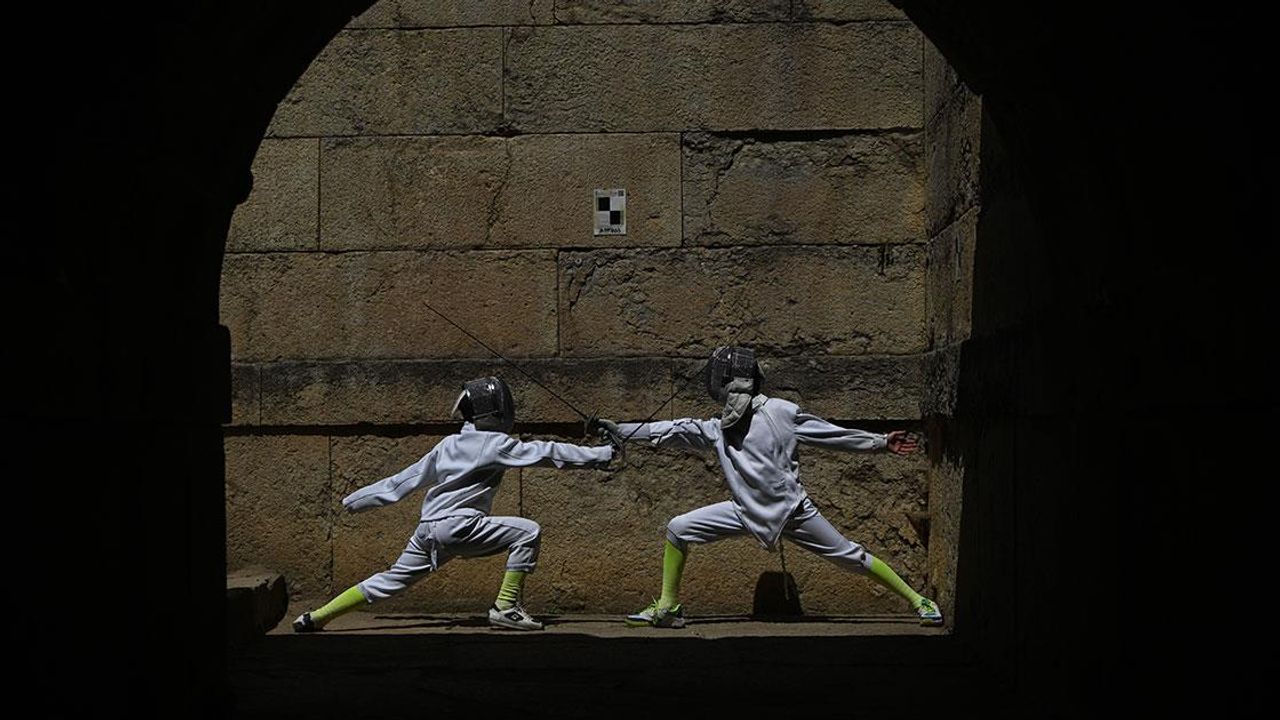 Gençlik ve Spor İl Müdürlüğü eskrim antrenörü Oğuz Yıldırım eşliğinde çalışan sporcular, tarihi milattan önce 3. yüzyıla uzanan Prusias Ad Hypium Antik Kenti'nde de özel izinle zaman zaman idman yapıyor.