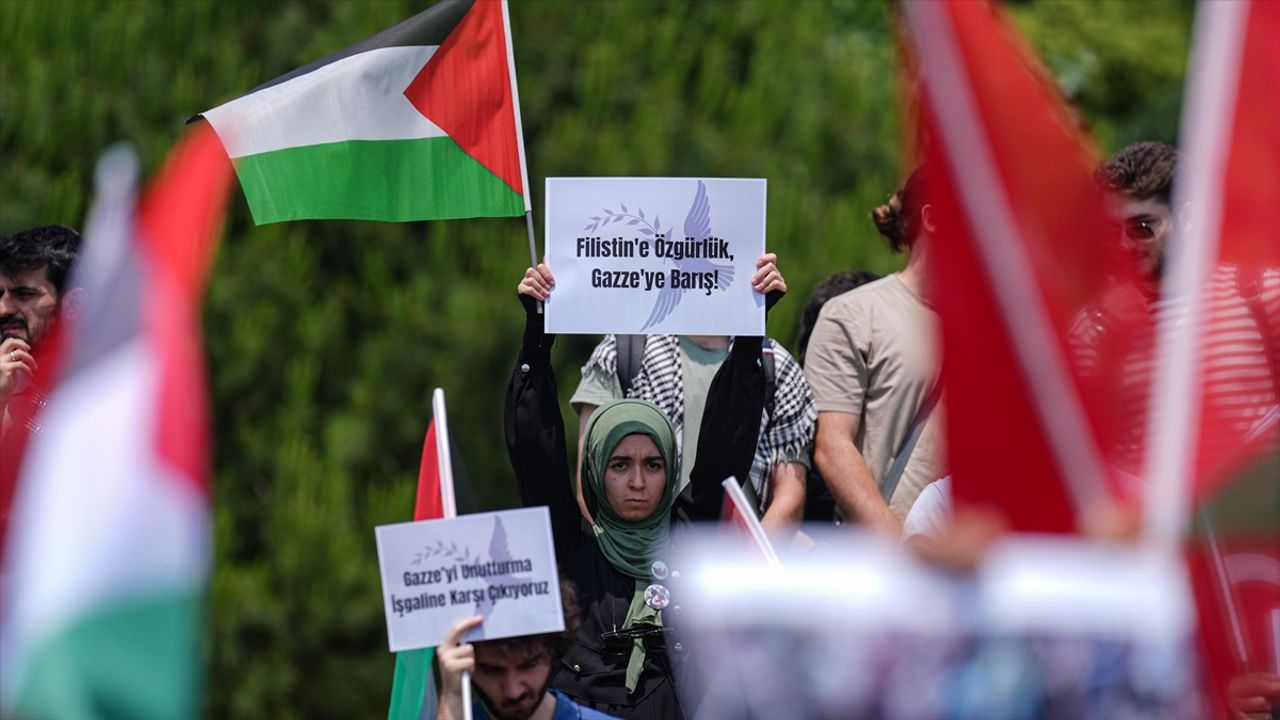 Öğrenci Rümeysa Gündoğdu da İsrail'in zulmüne karşı Gazze'ye destek olmak için eyleme katıldıklarını dile getirdi.