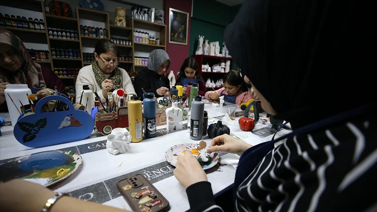 Kadınların atölyeye çocuklarıyla gelip hem keyifli vakit geçirdiğini hem de kazanç sağladığını belirten Yıldırım, 'Salı ve perşembe akşamları kurslarımız var. Genelde 10 kişi kadar oluyoruz. Değişik dönemlerde gelen gruplarımız var. Geri dönüşüm yapıyoruz, kendi objelerimizi boyuyoruz. Buradaki amacımız insanların mutlu olması. Umutlarımızın tükendiği yerde böyle bir şey karşımıza çıktı. Yeniden doğmaya çabaladık ve başardık.' dedi.