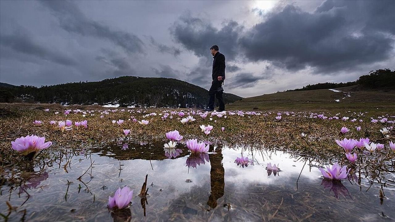 Öte yandan rengarenk çiçekler, yağışların ardından debisi artan Göndelen Deresi ile yüksek kesimler ve ormanlık alanlar dronla görüntülendi.